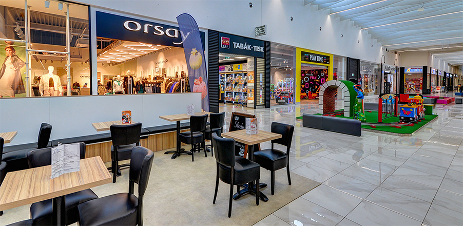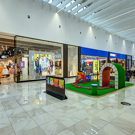 K pohodě nakupujících by měly zejména přispět dětské zóny k zabavení nejmenších, tak aby rodiče a prarodiče mohli v klidu nakupovat. Součástí pasáže je interiérové hřiště, molitanový bazének pro nejmenší či stolky s Legem. Pobyt zákazníků se snažíme zpestřit i sezónními dekoracemi.